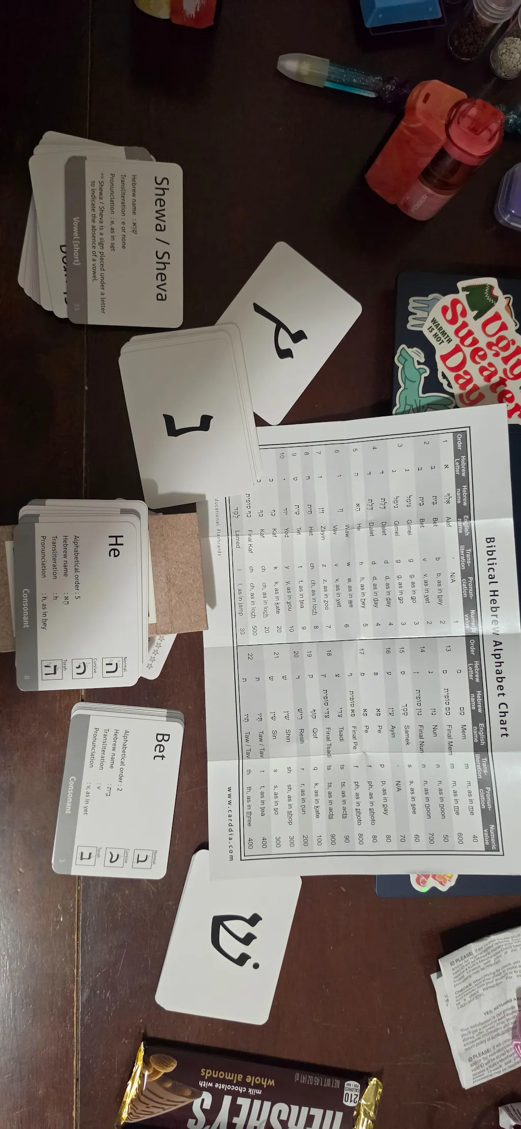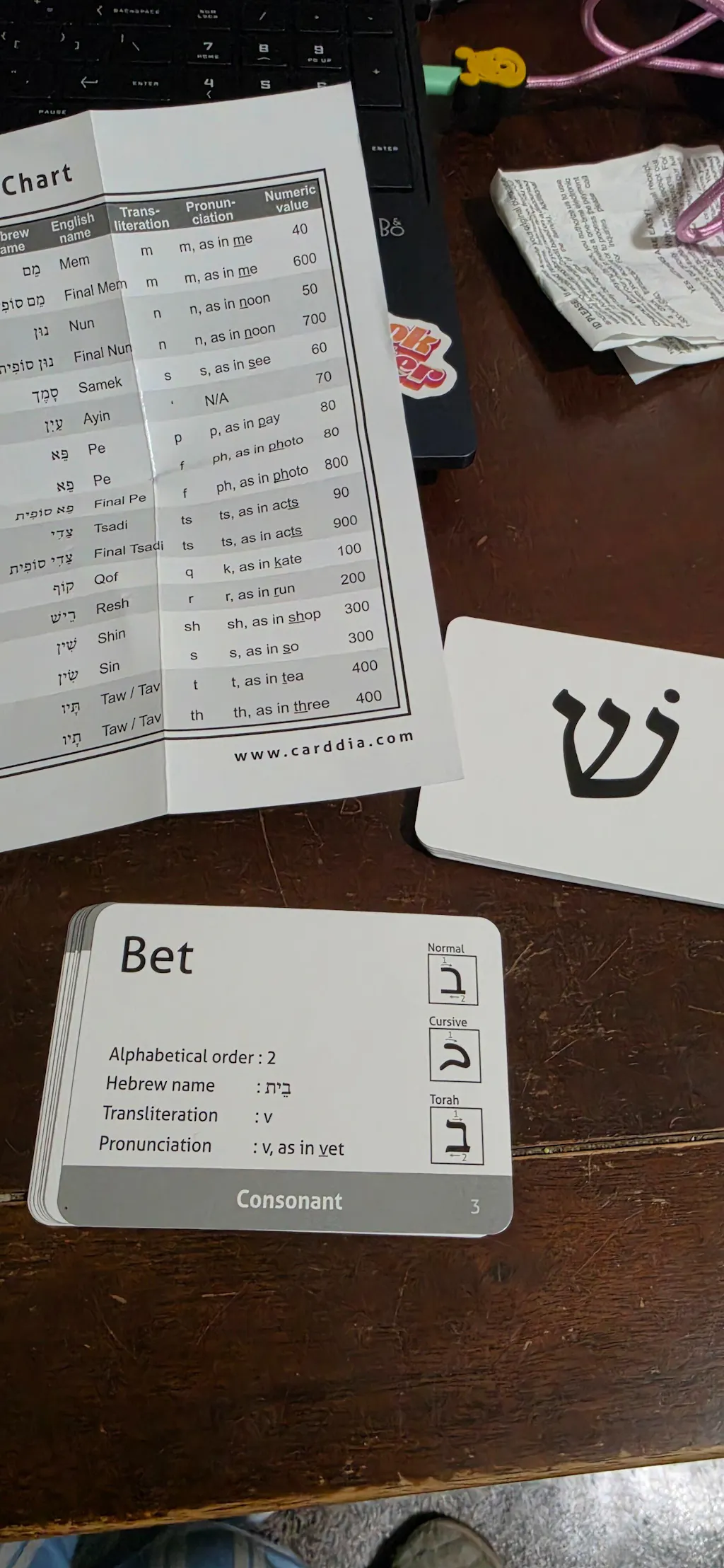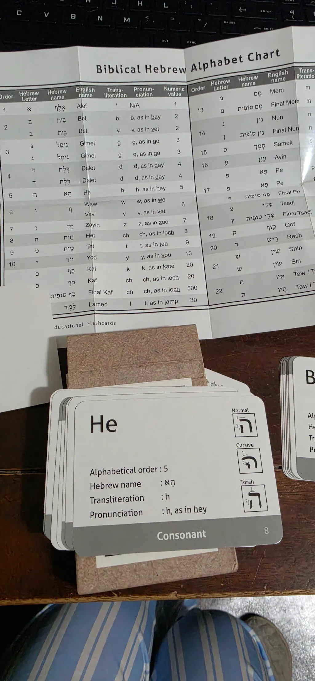 - 53 flashcards covering all Biblical Hebrew letters, including consonants, vowels, dagesh, and final forms.
