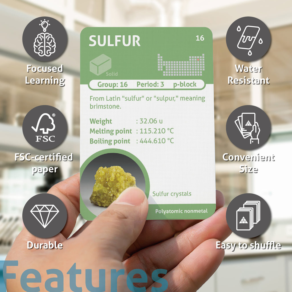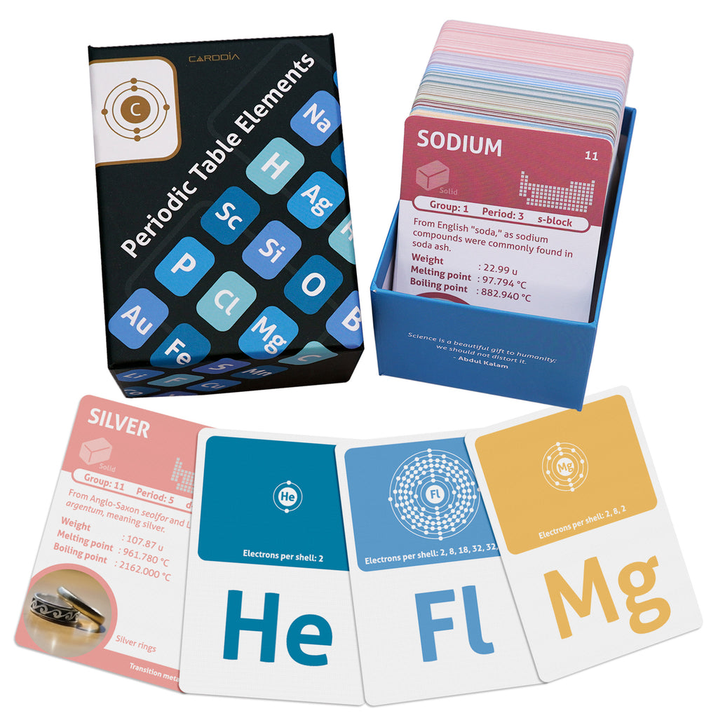 These cards are designed to cover all chemical elements in the Periodic Table, they comprise of a picture of the chemical element alongside short and crisp write-up. It means the cards are attractive to look at and easy to grasp and learn. As these cards have small fact file on them, therefore; the students can memorize the components and their uses in the fastest manner possible. From the weight of the chemical to its scientific name, everything is mentioned in details.